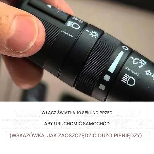 Włącz światła przednie na 10 sekund przed jazdą, aby zaoszczędzić pieniądze